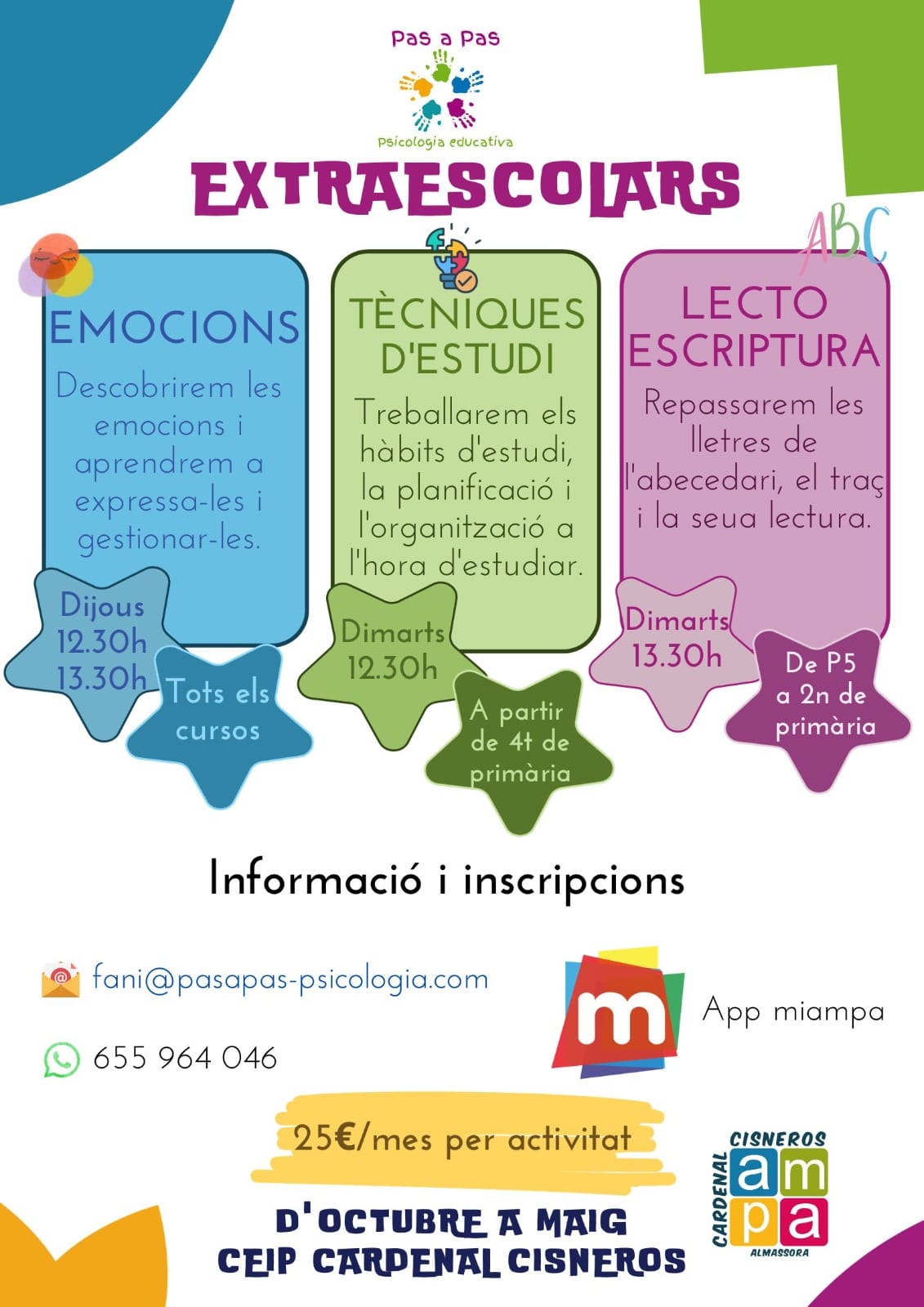 Si vas al CEIP Cardenal Cisneros d’Almassora o al CEIP Pintor Sorolla de les Alqueries, no ho dubtes! Informa’t!