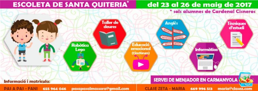 - Limitem les places a 10 alumnes. Per aquest motiu serà necessari abonar un 50% de l’Escoleta quan es faça la matrícula.