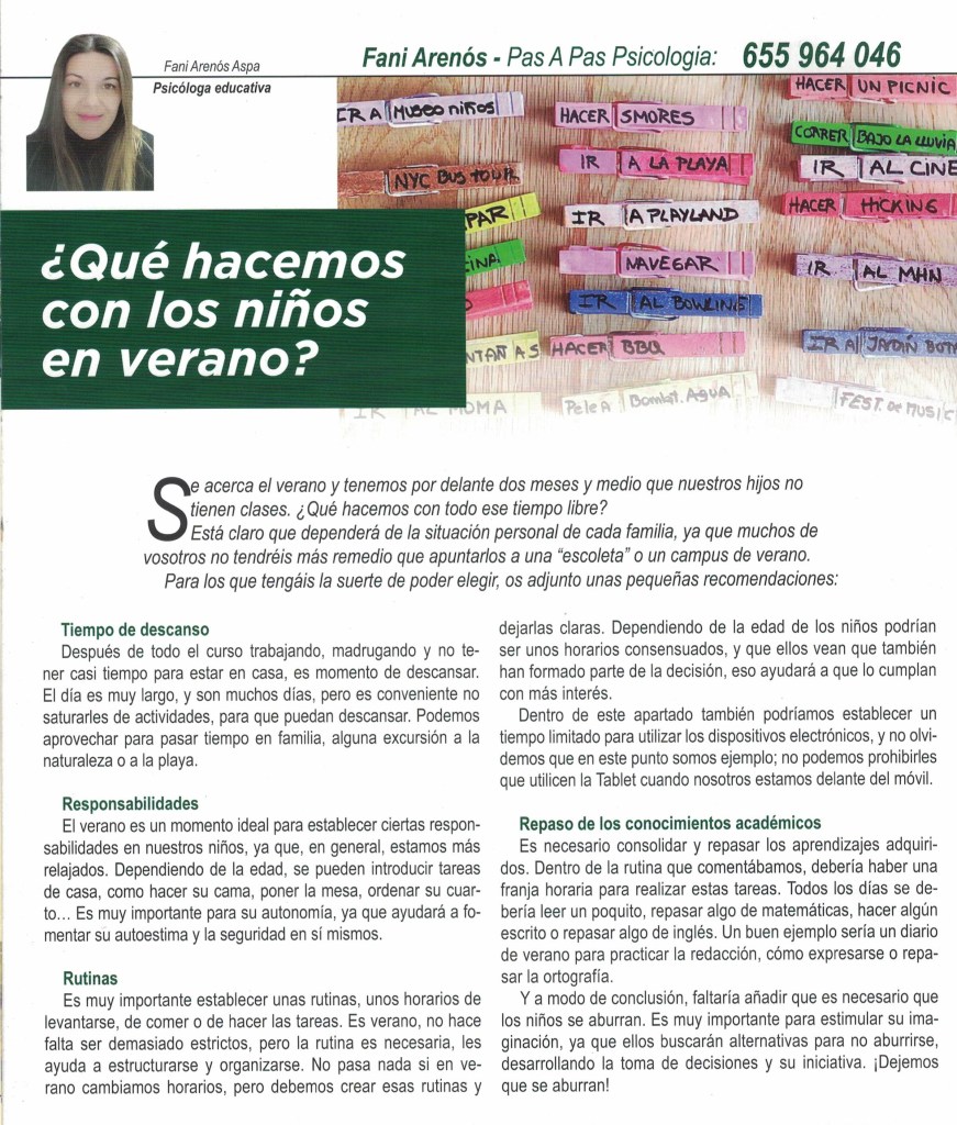 Se termina el curso escolar y muchas veces no sabemos muy bien qué es lo mejor para nuestr@s hij@s … ¿Los apuntamos a algún campus de verano? ¿Los dejamos descansar estos dos meses y medio? Aquí tenéis algunos consejos que espero que os sean de ayuda.